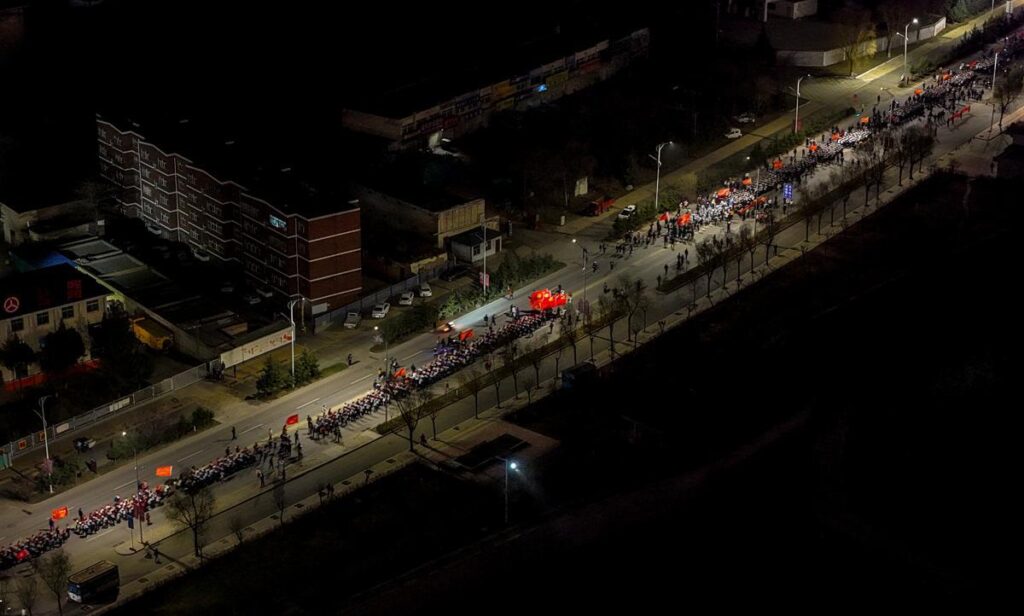 Às 5h da manhã do dia 3 de abril, mais de 3.000 participantes partiram de Guyuan, na região autônoma de Ningxia Hui, rumo ao Cemitério dos Mártires de Renshanhe, no condado vizinho de Pengyang. A viagem de ida e volta dura aproximadamente 17 horas e se tornou uma importante tradição anual, descrita como uma “marcha ideológica e política da classe trabalhadora”.