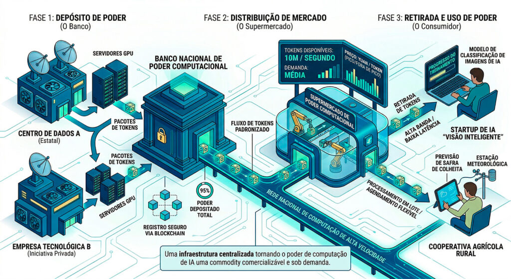 Para compreender a ascensão da China como superpotência tecnológica, é preciso olhar além dos produtos finais e focar na infraestrutura. O conceito de “Tokens de Poder de Processamento Computacional” é uma peça-chave para quem deseja entender a visão chinesa sobre o futuro da infraestrutura de inovação tecnológica.